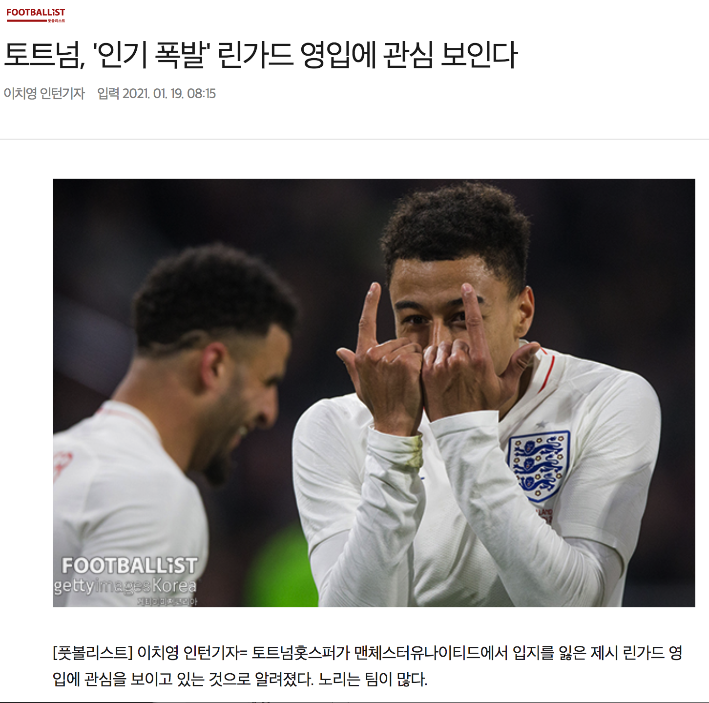 | 토트넘, '인기 폭발' 린가드 영입에 관심 | |