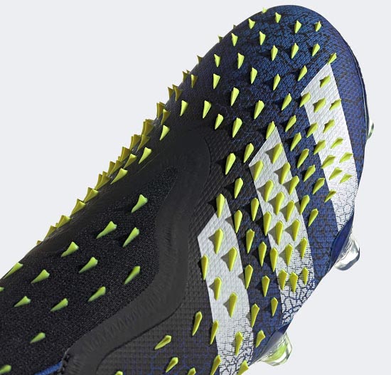 디자인은 굉장히 공격적입니다. 특히 프라임니트 어퍼 위에 적용된 ‘데몬스킨 2.0(DEMONSKIN 2.0)’이 더욱 강렬해졌는데요. 360도 범위를 감싸는 고무 돌기가 추가됐고 아디다스에 따르면 “이것은 우수한 볼 컨트롤과 볼 회전을 증가시키기 위함”이라고 합니다.