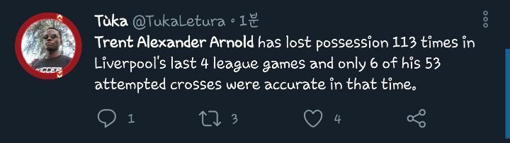그리고 아놀드는 지난 리그 4경기에서 53개의 크로스 중 6개만 정확했음..