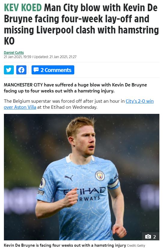 기사 전문: https://www.thesun.co.uk/sport/football/13813223/man-city-de-bruyne-liverpool-injury/