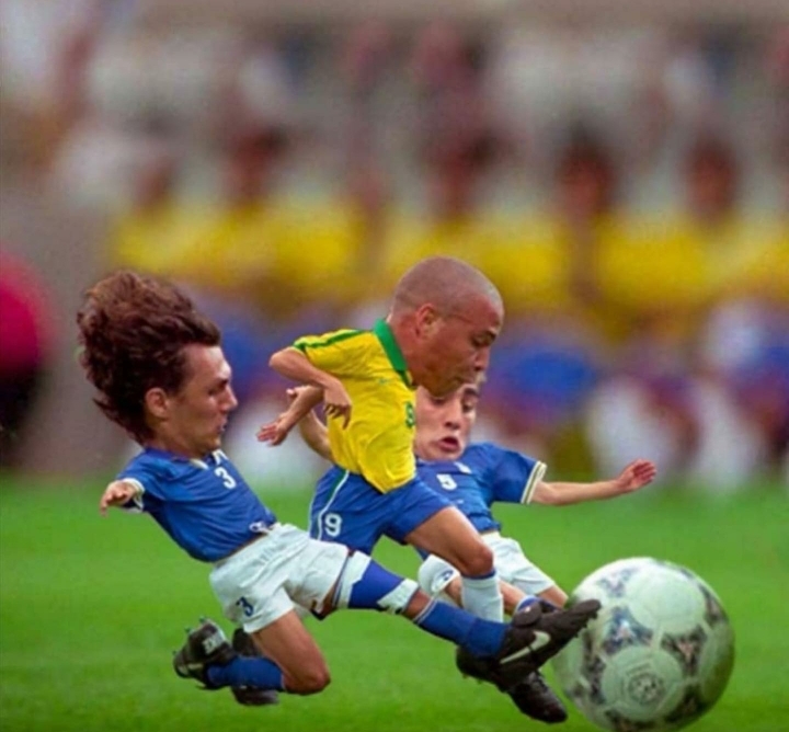 돌파하는 호나우두와 태클하는 말디니, 칸나바로