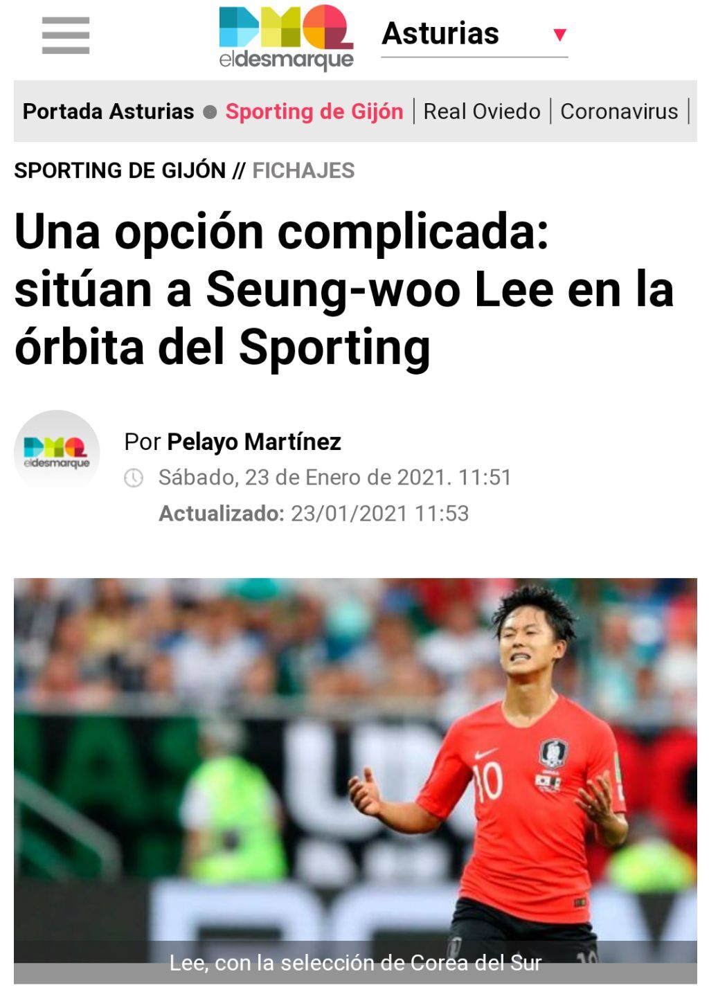 <엘데스마르케>복잡한 옵션 : 이승우를 스포르팅 히혼의 궤도에 올려 놓다
