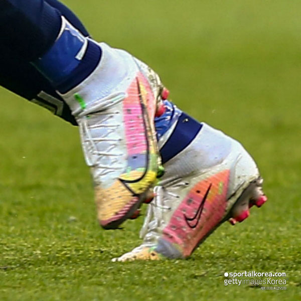 머큐리얼의 대표 모델답게 호날두는 누구보다 빠르게 이 축구화를 지급받은 걸로 보입니다. 화사한 색상의 조합으로 디자인된 축구화가 잔디 위에서 더욱 돋보이네요.