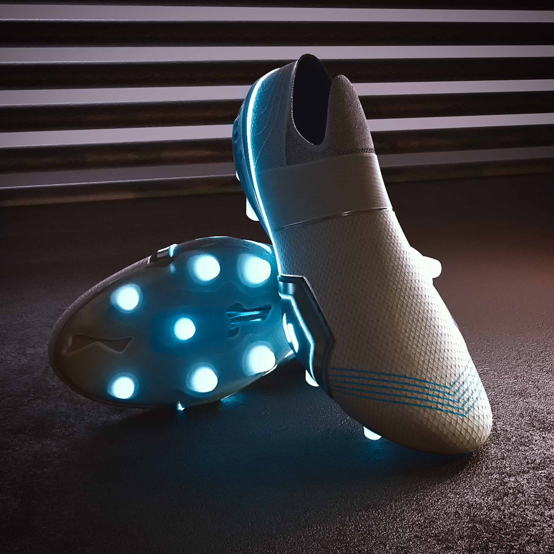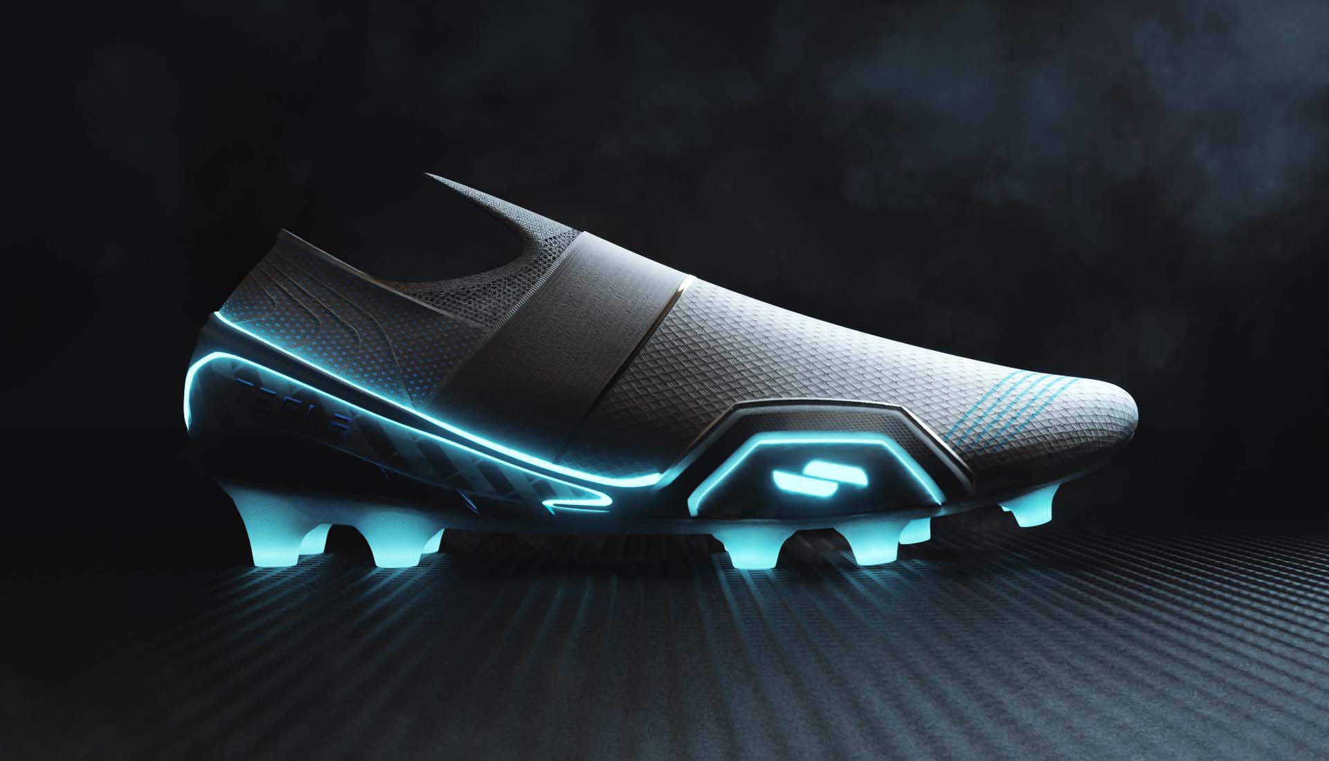 디자인이 굉장히 멋있지만 이 축구화는 실제로 존재하지 않는 가상 이미지일 뿐입니다. 이런 디자인의 축구화가 현실로 제작 가능하려면 2030년 정도는 되야할까요?