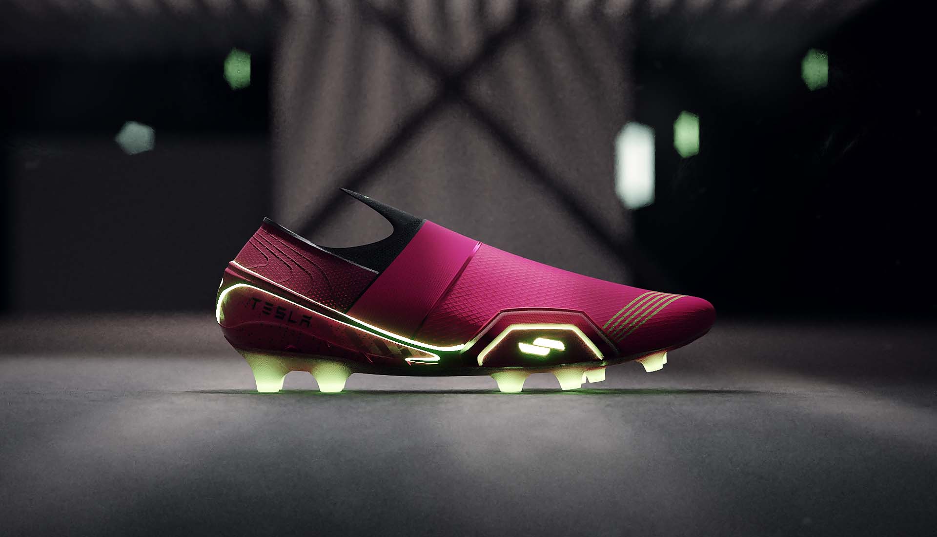 공개된 축구화는 세상에 없던 축구화인데요. 바로 전기차 업체인 ‘테슬라(TESLA)’에서 영감을 받은 컨셉 축구화입니다. 해외 디자이너인 Mossawi Studios에서 만든 가상의 이미지입니다.