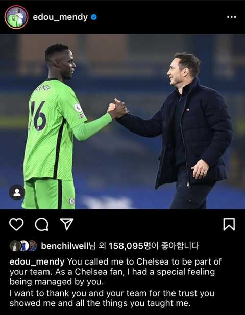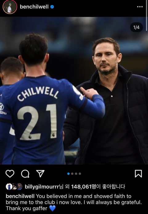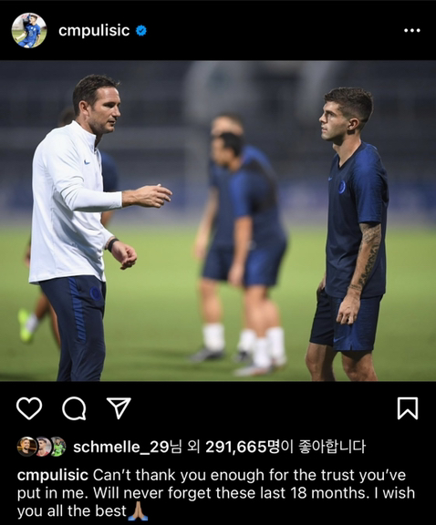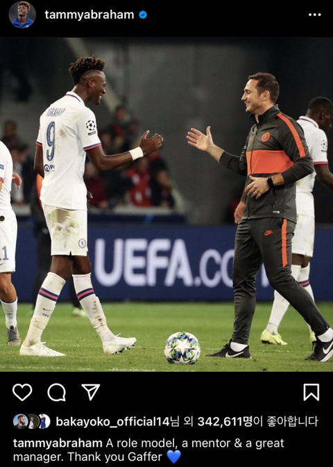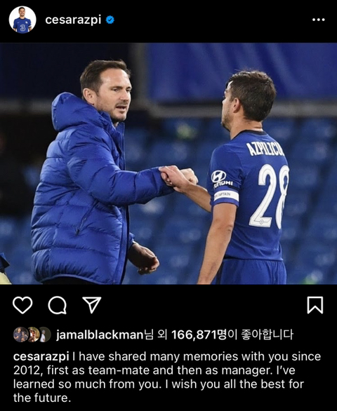 첼시팬으로 성장하며 당신을 존경했고 나의 우상이었습니다. 감독님 밑에서 뛰는게 어땠는지 설명할수가 없네요.