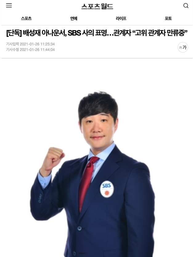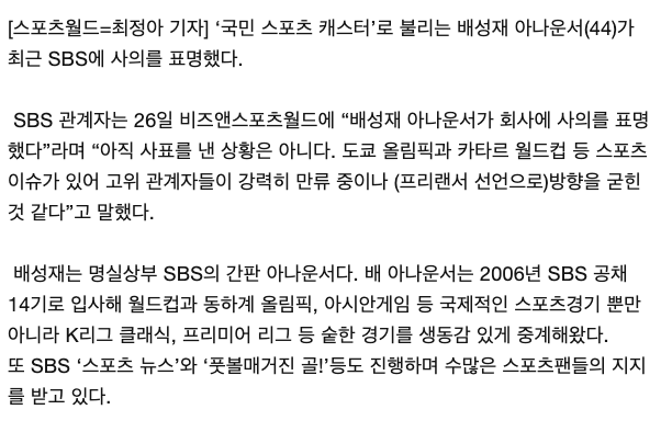 [배성재 SBS 사의 표명.. 고위 관계자 만류 중]