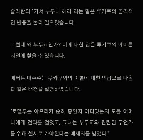 즐라탄 : "너네 엄마 불러서 부두교(아프리카에서 서인도 제도의 아이티로 팔려 온 노예 흑인들 사이에서 믿던 종교) 의식이나 치르러 가라. 작은 당나귀야" 루카쿠 : "너하고 네 부인 X깐다. 네 엄마에 대해서도 얘기해볼까?"