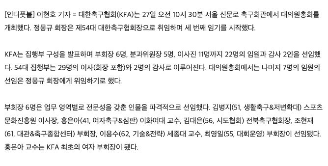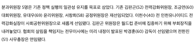 (젊은 인원들로 구성. KFA의 변화를 이끌 예정이라고 하네요)