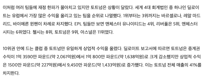 | 코로나 상황에도 유일하게 사업 수익이 상승한 PL 빅클럽 | |