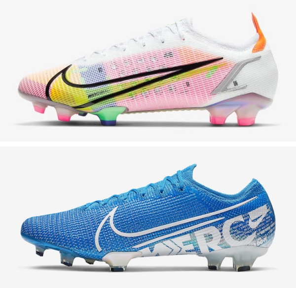 이번 머큐리얼의 명칭은 전작과 동일합니다. 다이내믹 핏 칼라가 적용된 것은 ‘머큐리얼 슈퍼플라이 8’, 로우-컷으로 제작된 것은 ‘머큐리얼 베이퍼 14’입니다.