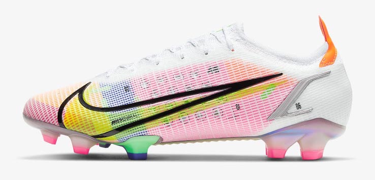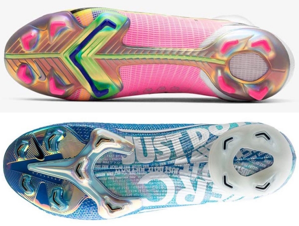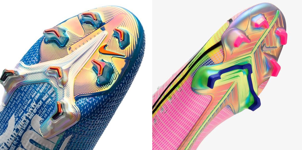 2021년 머큐리얼의 또 다른 큰 변화는 아웃솔에 있습니다. 이전 버전은 분리형 아웃솔이었지만 새로운 머큐리얼은 중앙부에 지지대가 추가된 ‘에어로트랙(Aerotrak)’ 플레이트를 적용했습니다. FG 스터드의 두께가 조금 더 두꺼워졌고 스터드 배열은 동일합니다.