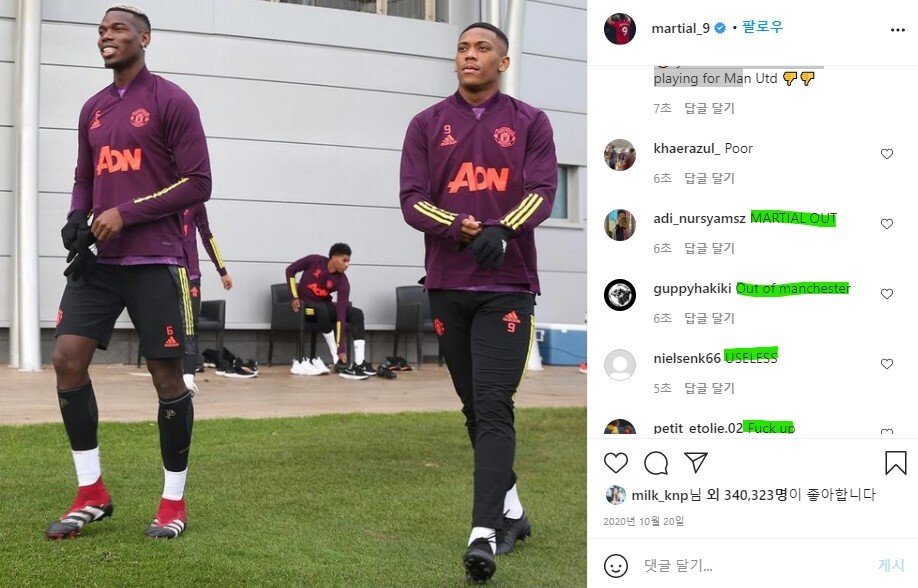 맨유 팬들 집결 중인 마샬 '인스타 상황'