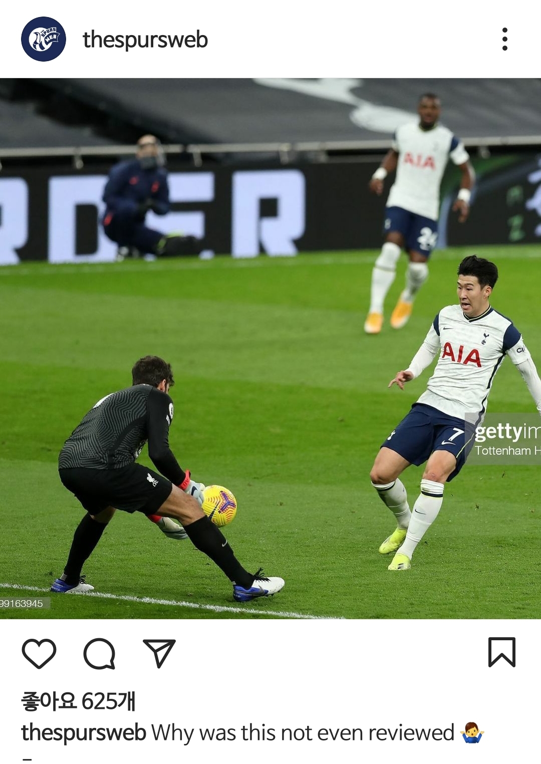 알리송이 페널티 밖에서 공 잡은것처럼 보이는데요. 만약 그렇다면 1대1 상황에서 핸드볼 반칙인데 레드 줄수 있지 않냐는 의견들도 있네요!!