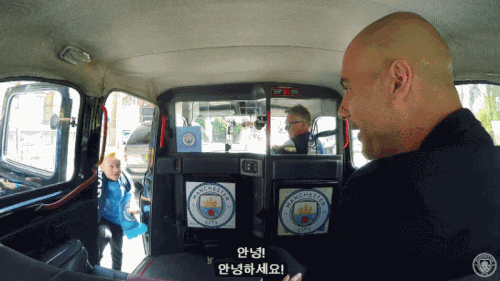 택시를 타자마자 과르디올라 감독을 보고 깜짝 놀라는 브라이든.