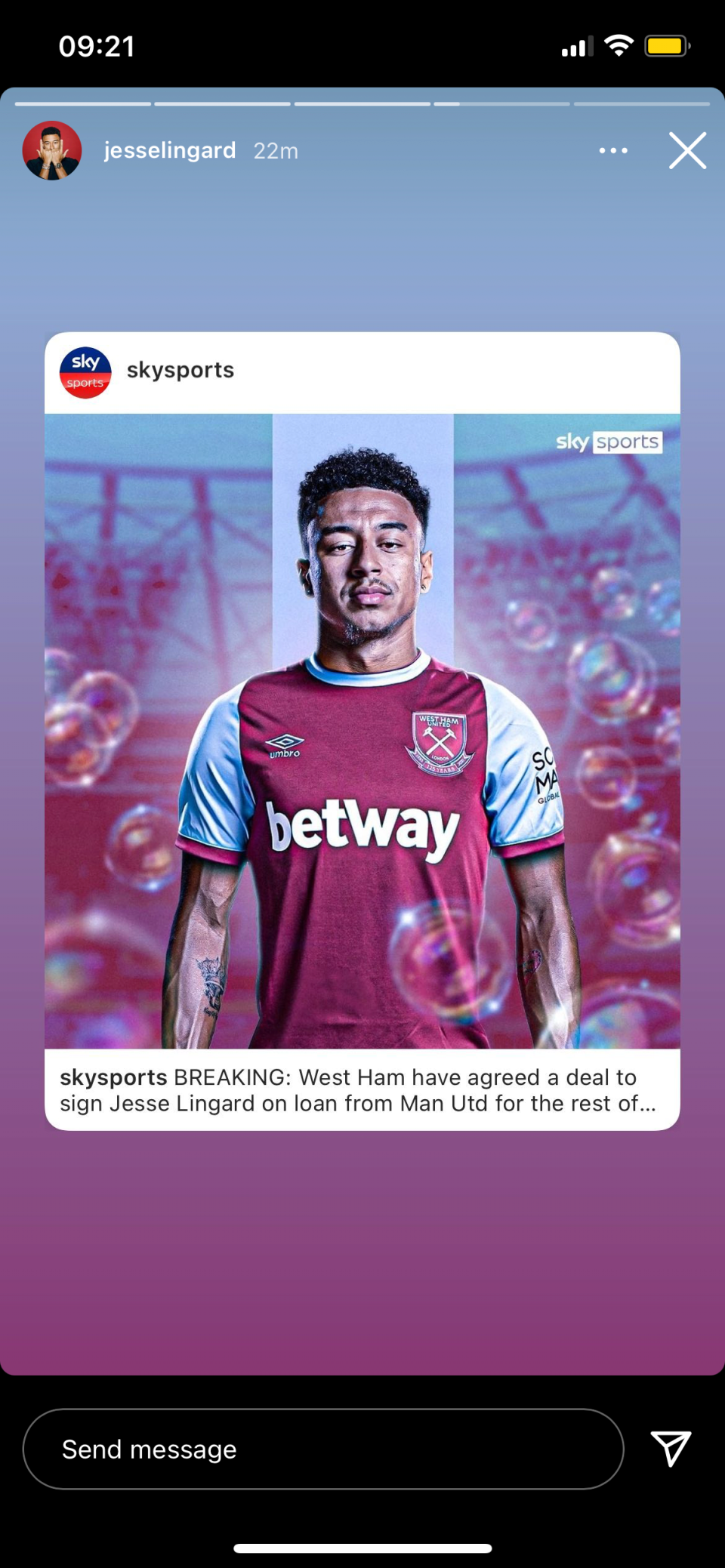 BREAKING: West Ham have agreed a deal to sign Jesse Lingard on loan from #MUFC for the rest of the season