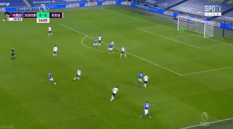 [토트넘의 자동문 수비.. 브라이튼의 선제골 장면.gif]