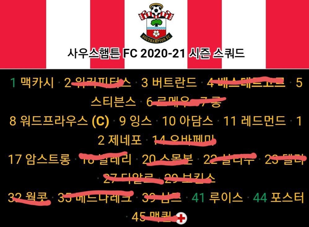 현재 심각한 상황의 사우스햄튼 스쿼드ㄷㄷㄷ