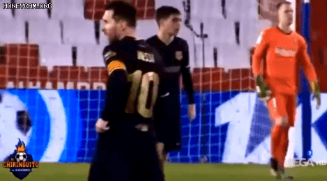 오늘자 팀동료들 리드하는 리오넬 메시.gif