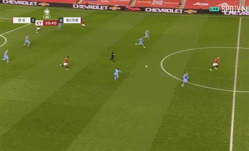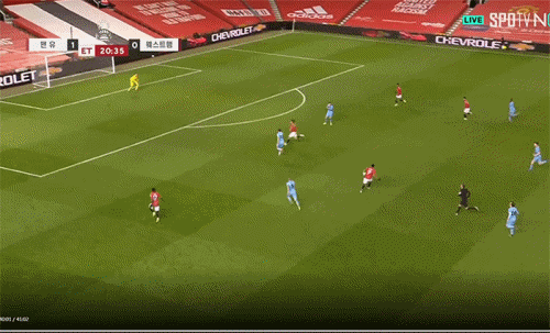 본인의 실수로 역습을 허용했지만 산책하는 마샬 (반면 브루노는 전속력으로 수비 가담)