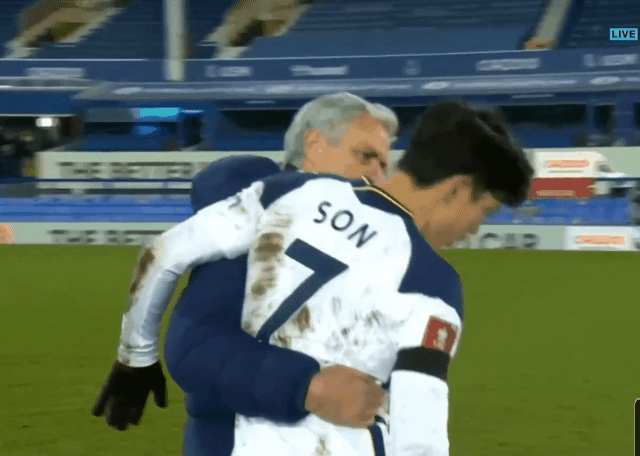 연장전 가기 전 다죽어가는 손흥민 부축해주는 무리뉴.gif