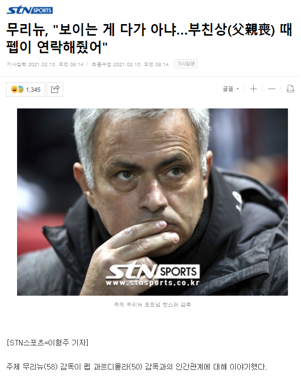 [무리뉴가 말하는 펩과의 관계, "보이는게 다가 아냐.."]