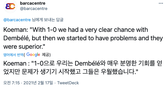 패배는 선수탓? 쿠만의 경기 후 멘트