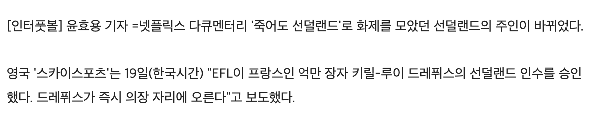 ['영앤리치' 선덜랜드 인수자의 클라쓰]