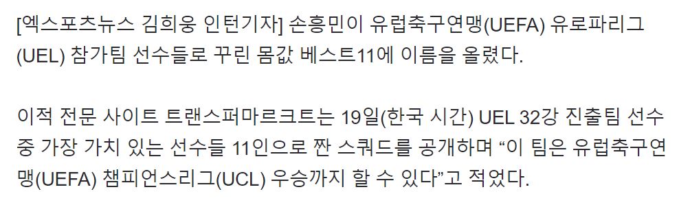 [‘손흥민 포함’ UEL 몸값 베스트11]