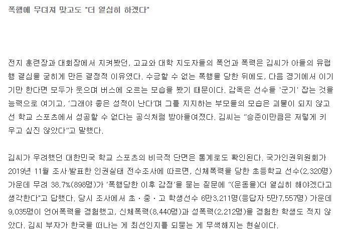 [(한국일보)"박지성도 맞았었다고?" 차라리 한국 떠나는 꿈나무]