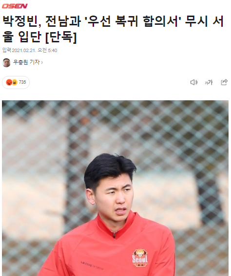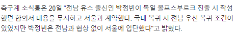 | 박정빈, 전남과 '우선 복귀 합의서' 무시 | |
