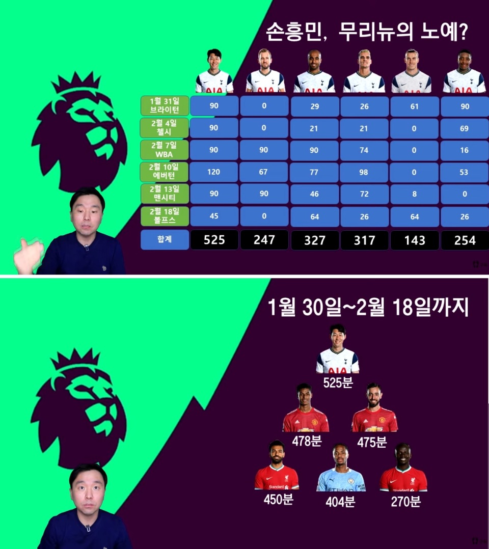 와.. 무슨 그 짧은 기간동안 경기 뛴 시간이.. 손흥민이 대충 뛰는 선수도 아니고..ㅠㅠ