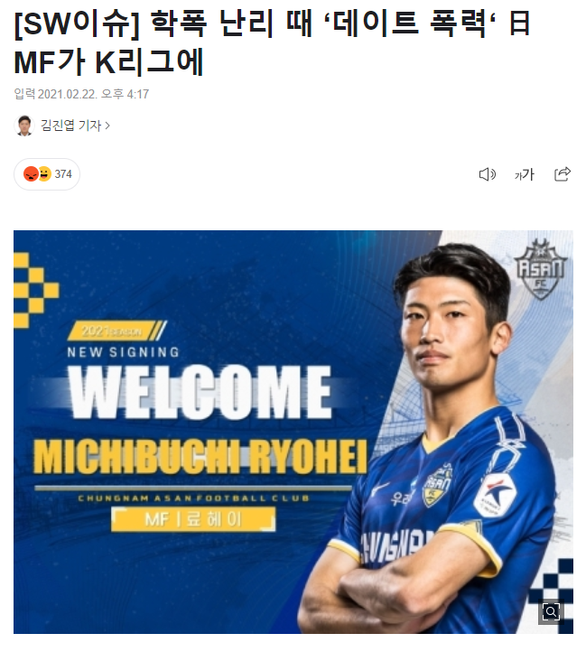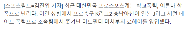 | (스포츠월드)학폭 난리 때 ‘데이트 폭력‘ 日 MF가 K리그에 | |