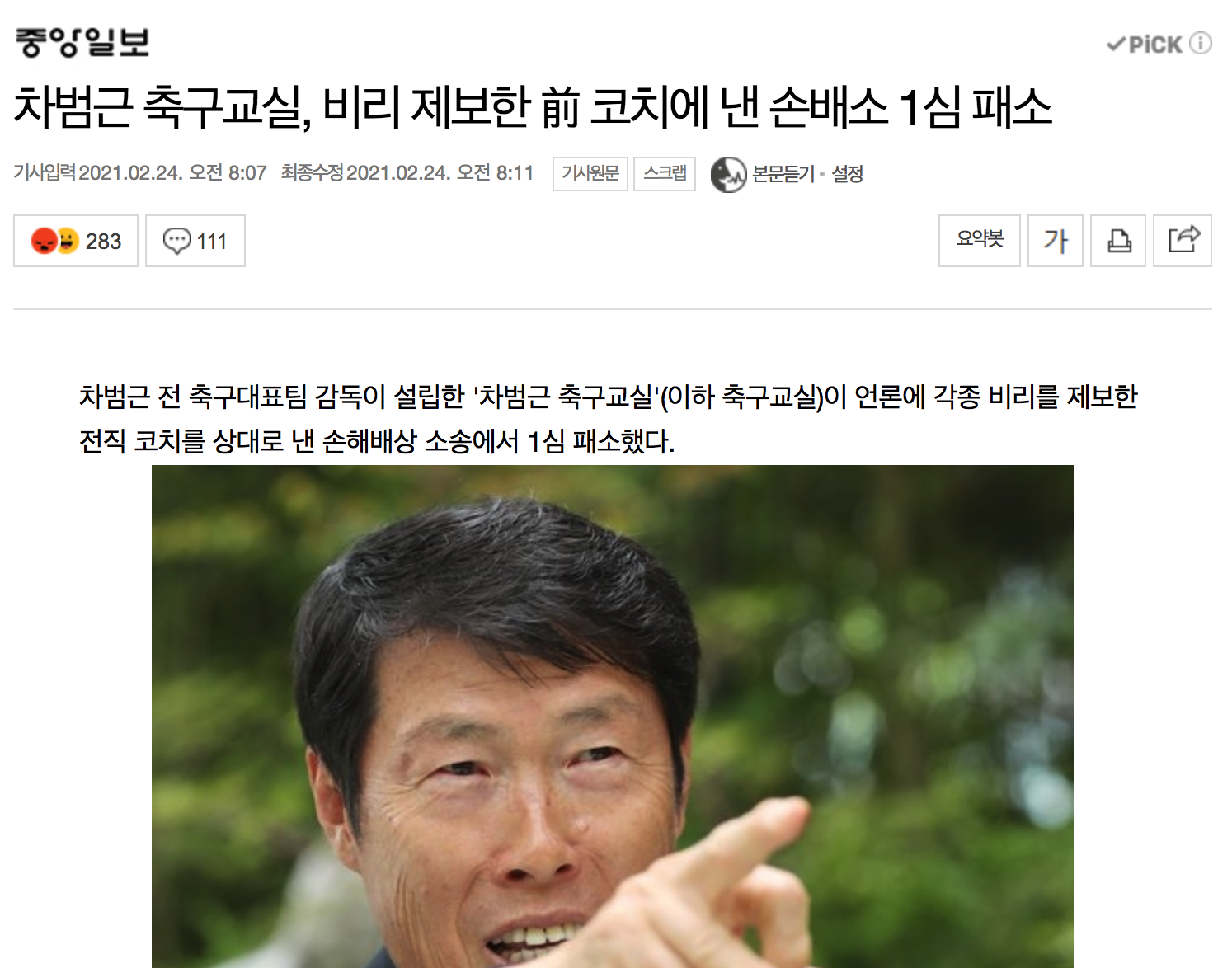 [비리 폭로한 前코치 상대로 패소한 차범근 축구교실]