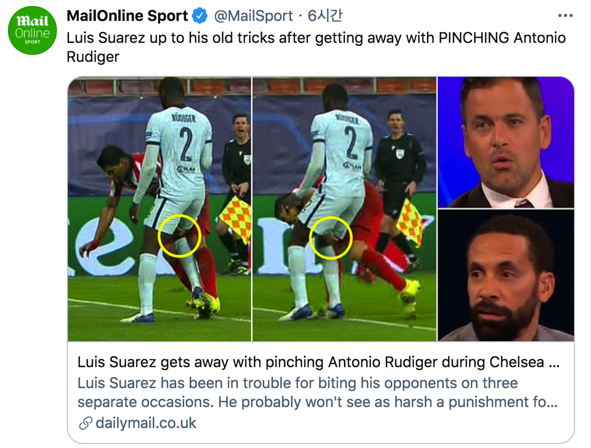 https://www.dailymail.co.uk/sport/football/article-9292861/Luis-Suarez-gets-away-pinching-Antonio-Rudiger-Chelsea-win.html