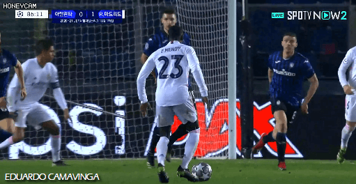 '왼발 잡이' 멘디의 오른발 감아차기.gif