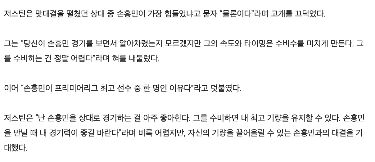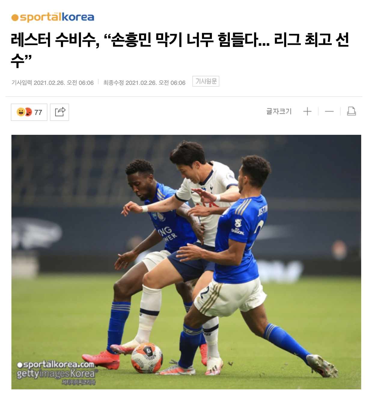 레스터 수비수 "손흥민을 막는 건 너무 어렵다"