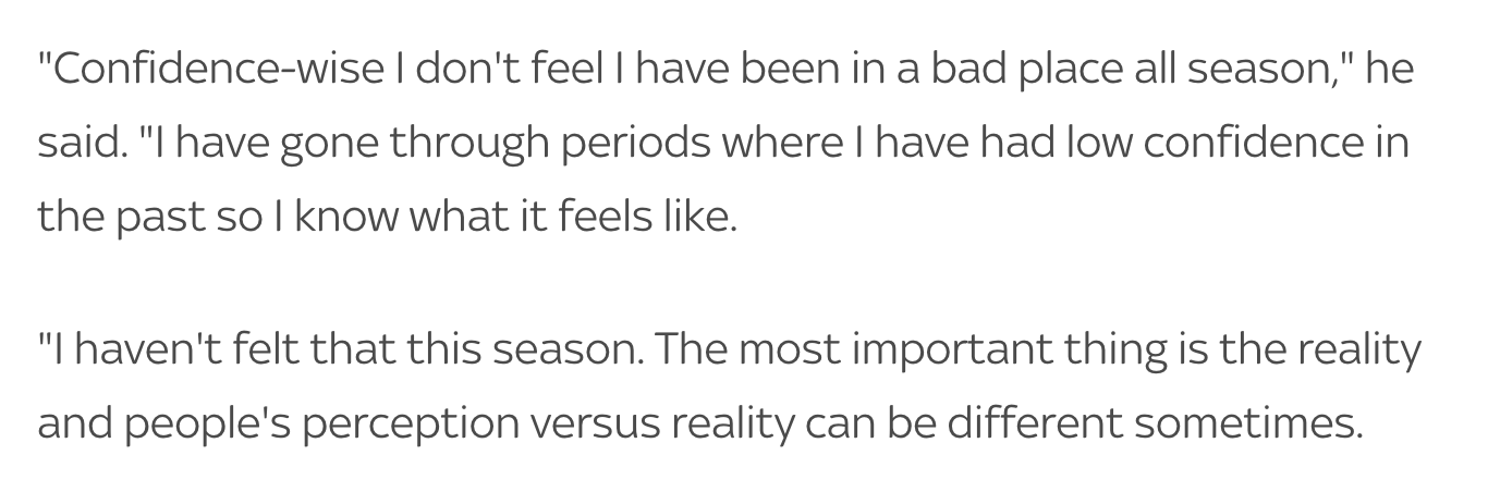 [자신감 넘치는 다이어 "현재 내 수준에 만족한다"]