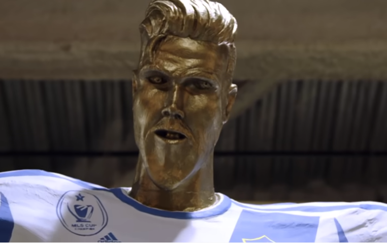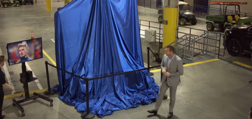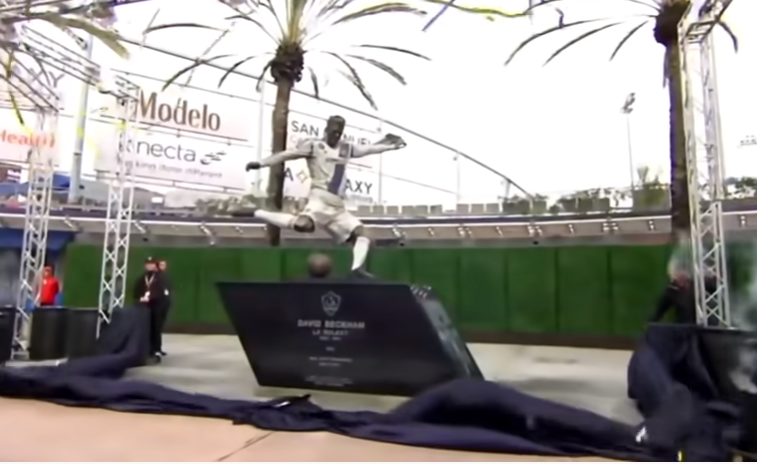 LA갤럭시에서 25,000명 관중 앞에서 데이비드 베컴의 동상을 제작하고 공개할 예정(실제 동상)