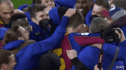 [극적인 국왕컵 결승 진출! 바르셀로나 선수들의 단체 세레머니.gif]