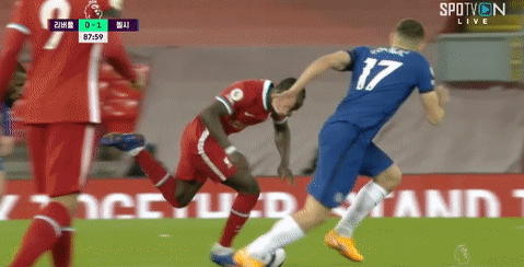 코바시치가 찬 공에 얼굴을 맞은 마네.gif