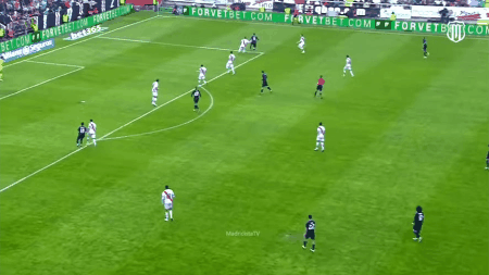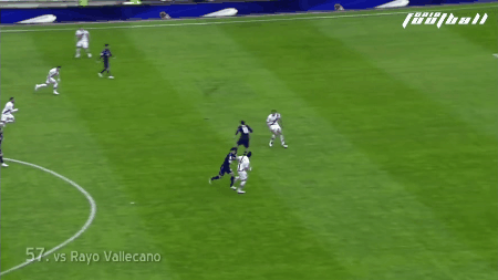 15-16 시즌 라요 바예카노전을 뛰는 가레스 베일. 호날두가 결장한 레알마드리드를 이끌고 두 골을 득점하여 역전승을 따냄