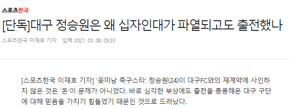 [십자인대 파열되고도 경기 뛴 정승원??]