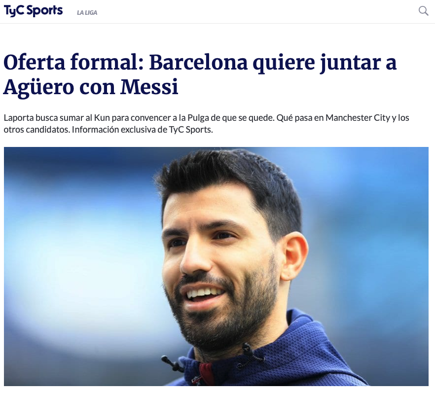 출처 : https://www.tycsports.com/la-liga/barcelona-agueero-messi-oferta-id326332.html