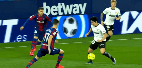 경기 초반 이강인이 보여준 탈압박 드리블 & 프리킥 득ㄷㄷ.gif