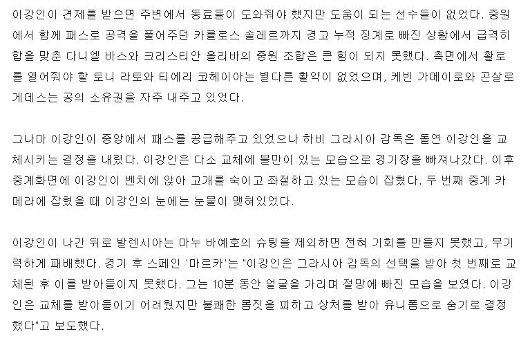 | 西매체 "이강인, 교체 후 상처받아 황폐해졌다"... | |
