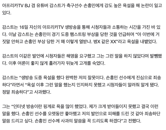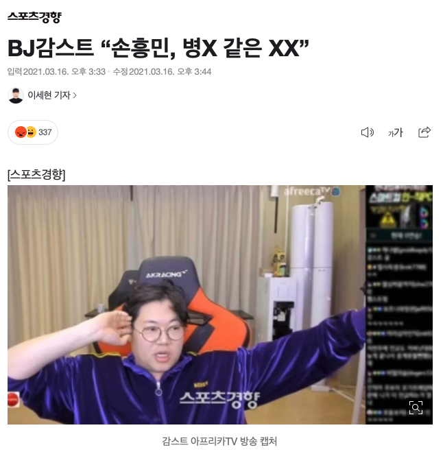| 감스트, 방송 중 "손흥민, 병X 같은 XX" 욕설 논란 | |