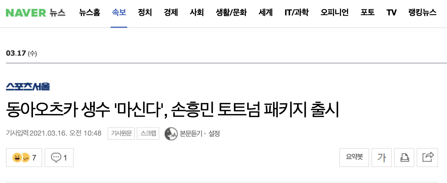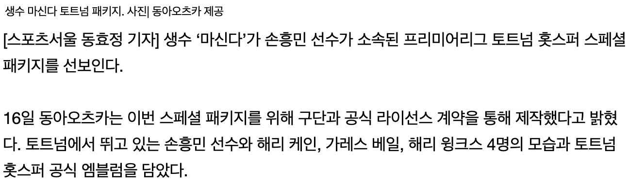 | 생수 '마신다', 손흥민 토트넘 스페셜 패키지 출시 | |