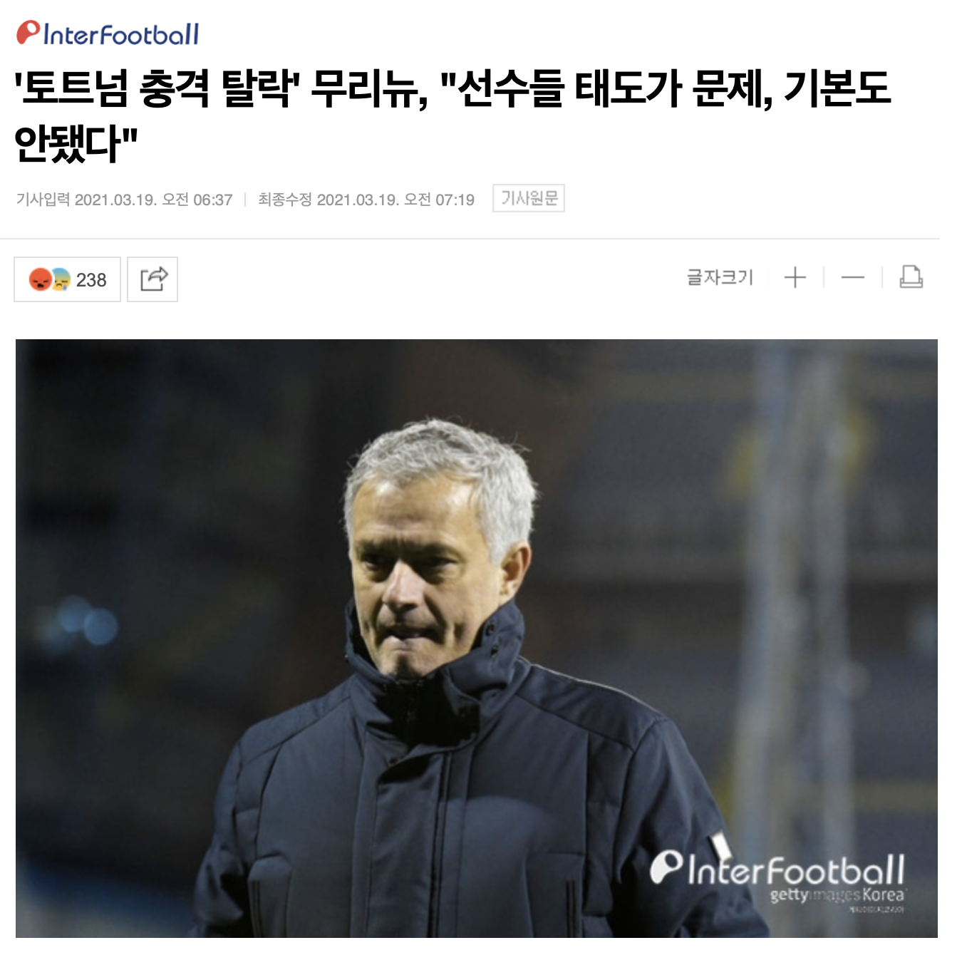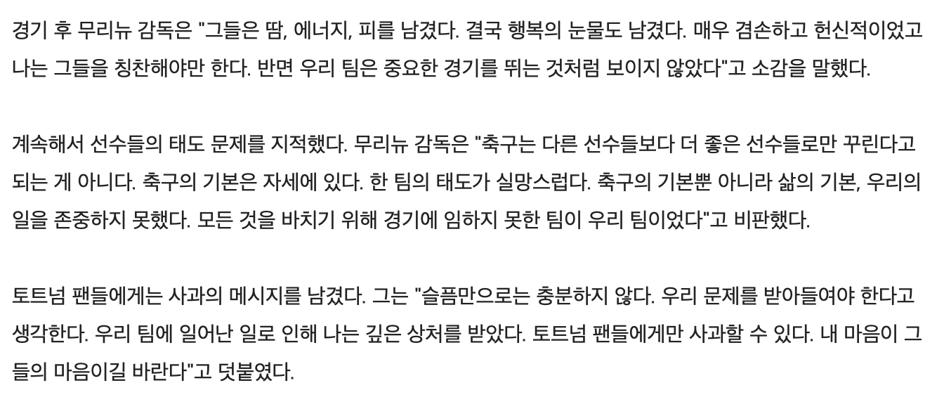 무리뉴 "선수들의 태도에 문제가 있다"