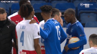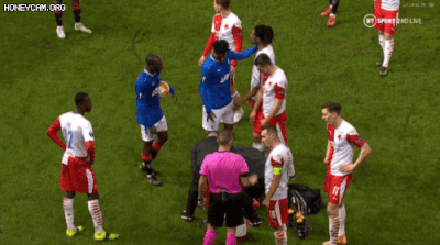 경기막판 루즈한 상황에서 갑자기 슬라비아의 쿠델라가 레인저스의 글랜 카마라에게 뭐라고 속삭임